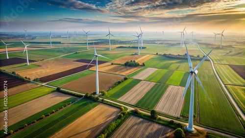 Aerial Minimalist View: Wind Turbines & Farmland