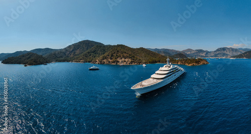 aerial panorama Of a super yacht in a natural marina