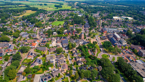 Aerial panorama view of the city Borger in the Netherlands on a sunny morning in summer
