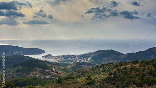 Aerial Panoramic View Of Soller Majorca Spain On A Cloudy Day