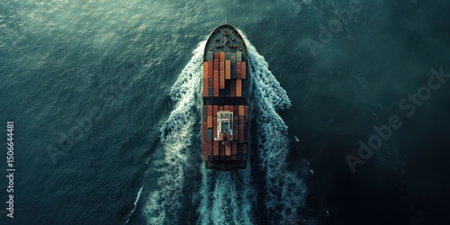 Aerial Perspective of a Swift Cargo Vessel Navigating the Open Sea with Ample Copy Space
