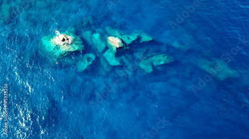 Aerial photo rocks in clear blue sea