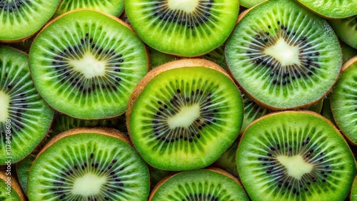 Aerial Photography: Kiwi Slices with Seeds, Green, Round, Close-up