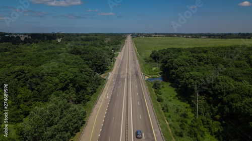 Aerial Shot Of A Highway Passing Through The Rural Countryside