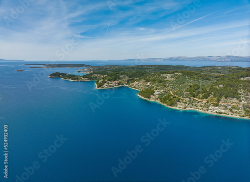 Aerial shot of the island Korcula near Vela Luka