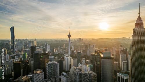 Aerial skyline at sunset cityscape of smart city in Kuala Lumpur, Malaysia on 11 October 2024