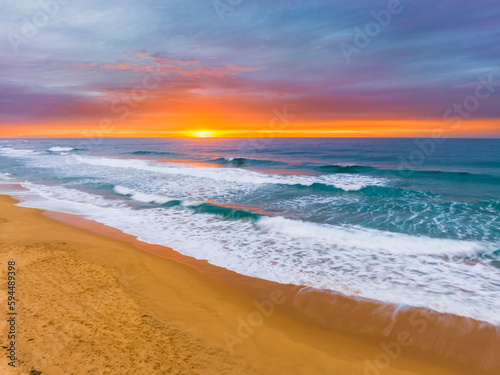 Aerial sunrise at the seaside with cloud cover