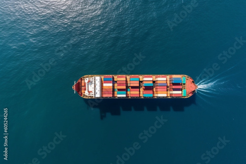 Aerial Top View Container Cargo Ship In The Open Sea