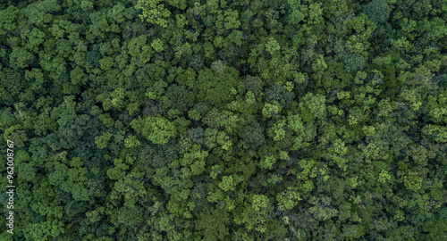 Aerial top view green forest tree texture and background, Tropical rainforest ecosystem ecology healthy environment Texture green tree forest view from above.