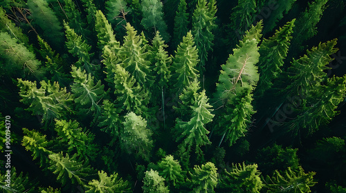 Aerial top view of summer green trees in forest in rural Finland.