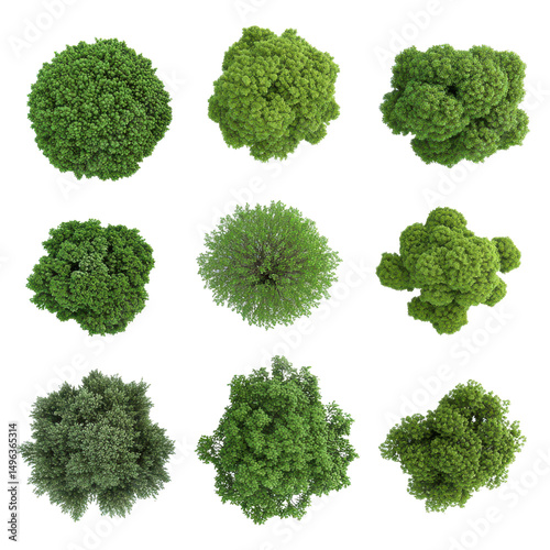 Aerial tree views set for landscape architecture and urban planning design top down isolated on black