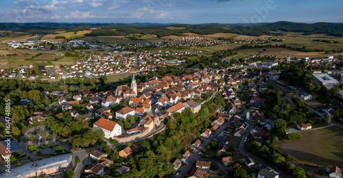 Aerial view around the city Nabburg in Germany on a sunny day in spring.
