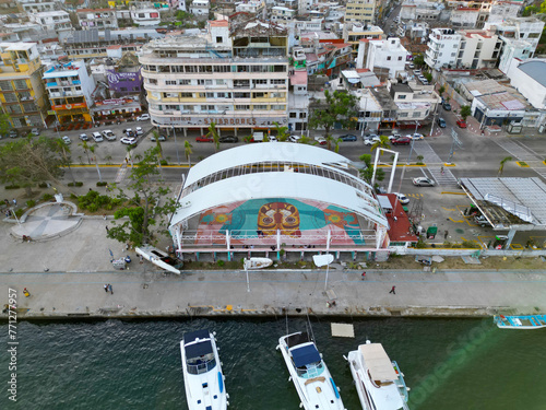 Aerial View: Basketball Court on Acapulco's Malecon - Horizontal Shot