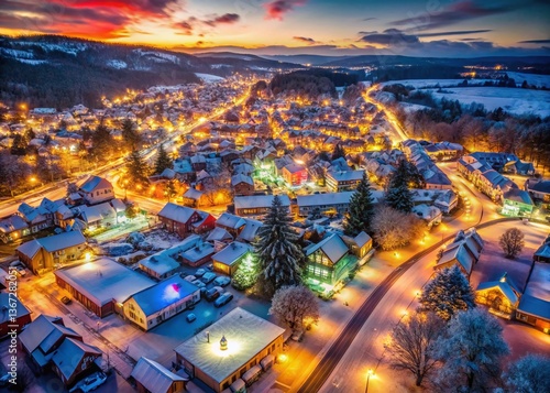Aerial View: Christmas Lights Dazzle Night Sky, Festive Holiday Illumination