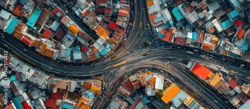 Aerial View City Intersection Colorful Homes