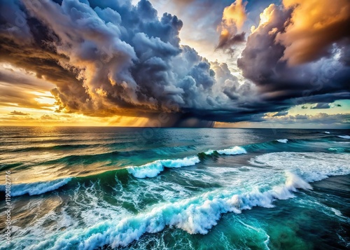 Aerial View: Dramatic Storm Clouds over Turbulent Ocean