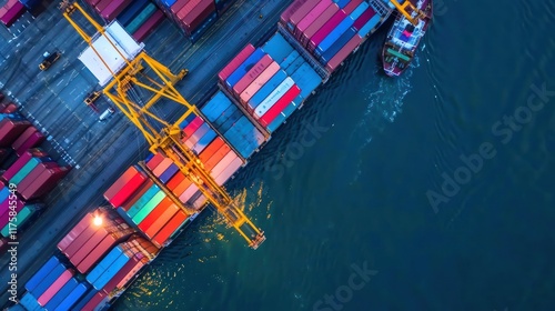 Aerial View of a Busy Container Port at Dusk: A Hub of Global Trade and Logistics