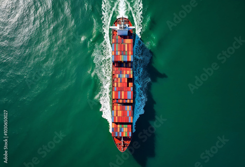 Aerial View of a Cargo Ship Sailing in Open Water"