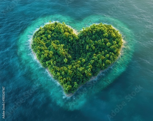 Aerial View of a Heart-Shaped Island Surrounded by Crystal Clear Water Perfect for Romantic Getaways and Nature Lovers Embracing Serenity and Beauty