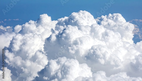 Aerial view of a large, dense cumulus cloud formation against a clear blue sky