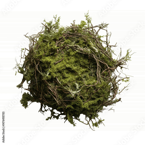 Aerial View of a Lush Green Mossy Nest, Organic Texture Transparent background