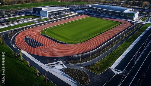 Aerial View of a Modern Athletics Stadium