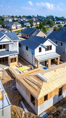 Aerial view of a new residential development under construction, showcasing numerous homes in various stages of completion.