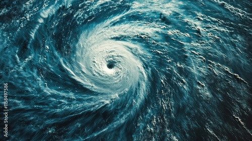 Aerial view of a powerful hurricane swirling over the ocean's surface.