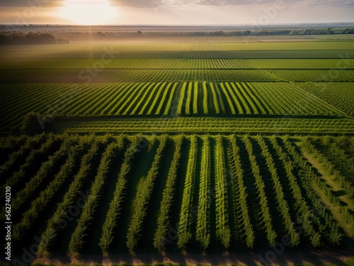 Aerial view of acres of farmland.