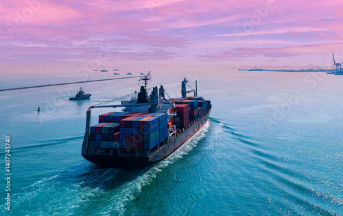 Aerial view of Business trip with ship the partner connection Container Cargo freight ship for Import Export