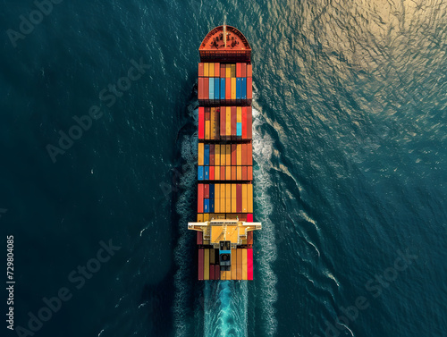 Aerial view of cargo container ship, cargo vessel ship carrying container and running for import export concept technology freight shipping sea freight by Express Ship
