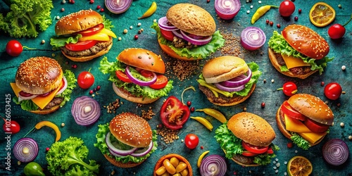 Aerial View of Colorful Burger Clip Art for Food Illustrations and Designs