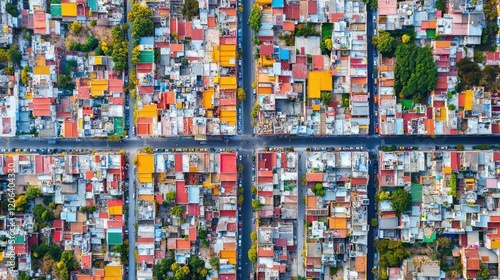 Aerial View of Colorful City Block Houses and Streets