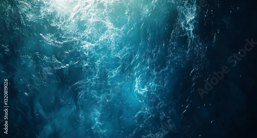 Aerial View of Deep Blue Sea with White Foaming Waves