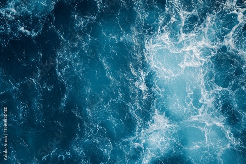 Aerial view of deep ocean waves in vivid blue. Neural network AI generated