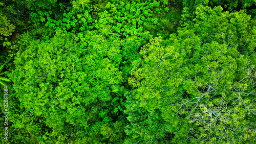 Aerial View of Dense Tropical Vegetation with Vibrant Green Tones