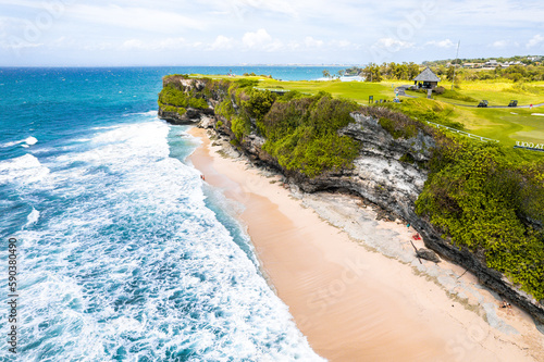 Aerial view of Dreamland Beach in Pecatu on the Bukit Peninsula on the island of Bali, Indonesia