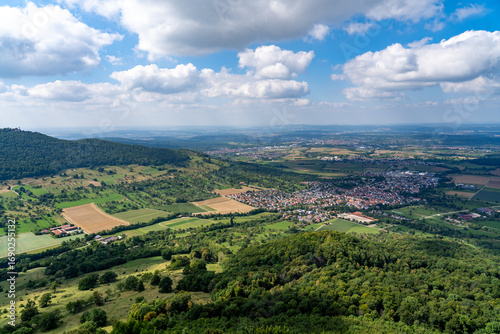 Aerial view of farmland and villages near Breitenstein, Swabian Alb