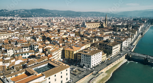 Aerial view of Florence cityscape and old italian style buildings. High quality photo