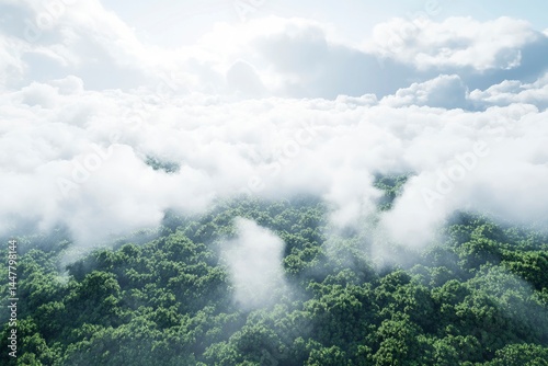 Aerial View of Forest with Clouds