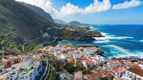 Aerial view of Garachico, a small town on the northern coast of Tenerife in the Canary Islands, Spain