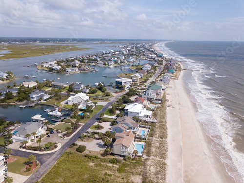 Aerial view of Garden City Beach and Surfside Beach along the Atlantic coast of South Carolina.