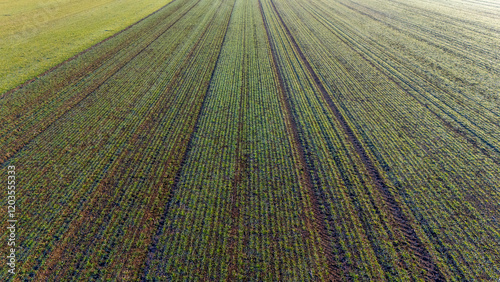 Aerial View of Green Crop Field Rows