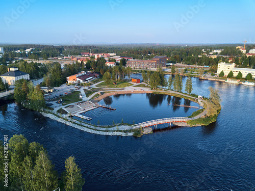 Aerial view of Ilosaari Island on Pielisjoki river in Joensuu, Finland.