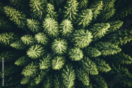 Aerial View of Lush Green Forest Canopy with Dense Pine Tree Growth in Nature