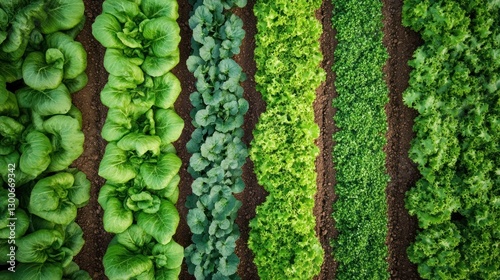 Aerial View of Lush Green Vegetable Rows in a Farm
