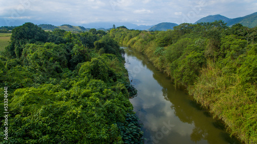 Aerial view of Macacu River, one of the rivers that flows into Guanabara Bay, the postcard of Rio de Janeiro.