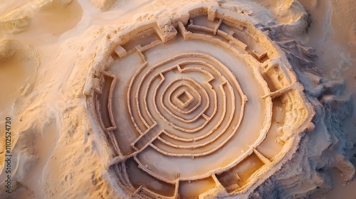 Aerial view of Mohenjo-Daro ruins, intricate layout, sand-toned landscape--style raw