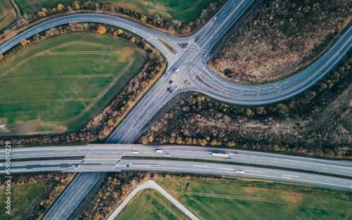 aerial view of multiple highways and a freeway ramp, infrastructure, autobahn