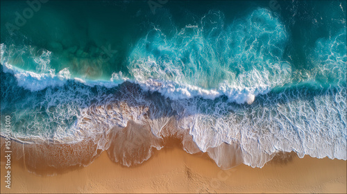 Aerial View of Ocean Waves Crashing on Sandy Beach